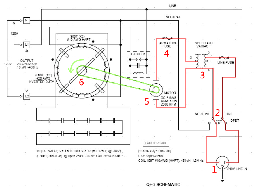 既然QEG已经有能力在达到谐振之后,产生超输出的电力,那么我们的最后一个步骤,就是把一开始供应QEG马达的市电电源切断,转而使用QEG自己发出来的电来供应自己的马达,实现自我供应。