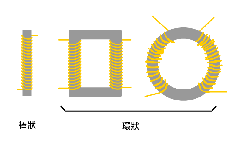 如果我们用漆包线缠绕一根铁棒制成一个线圈(如下图棒状的线圈),并将漆包线通电,就会让铁芯变得有磁性。这时铁芯的一端会变成N极,另一端则会变成S极。漆包线缠绕铁芯时的顺、逆时针方向,会决定铁芯哪一头变成N极和S极。这其实就是电磁铁的原理。通常电磁铁的铁芯是棒状的。不过我们的铁芯比较特别,它是环状的。