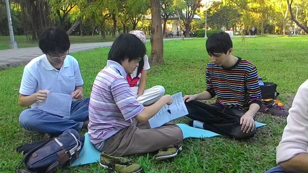 之後咱們新興探測師恩霖幫光工做一連串解答, 真的好有愛, 認真的男人~有帥! 大家相互交流心得, 在快結束聚會時, 一位曾經來過大聚會的長髮白皙膚質男孩帶著幾位新朋友過來, 兩位年輕人很好奇如何做冥想和我們的水晶石頭, 就大概跟他們做簡單冥想解說和聚會時間, 歡迎他們還參加, 然而……我忘記彼此互留訊息和官網資訊哈哈哈~