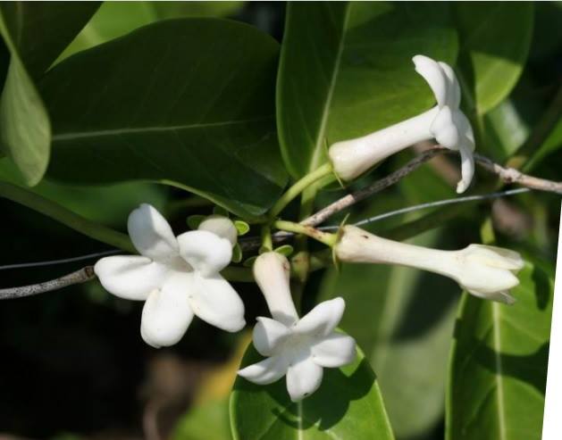 非洲茉莉所產生的揮發性油類,有殺菌作用,還能使人放鬆;也因為這種油類會散發淡淡香氣,能調節體內荷爾蒙平衡,有助於睡眠。