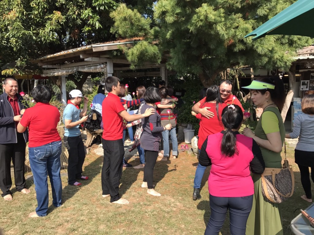儀式結束後透過每人手上的一朵玫瑰花,跟不同的夥伴交換及互相擁抱與祝福,令人整個心都溫暖了起來。