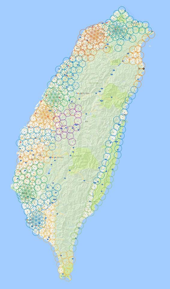 預計全台的光漩渦共振場完成後將如以下示意圖: