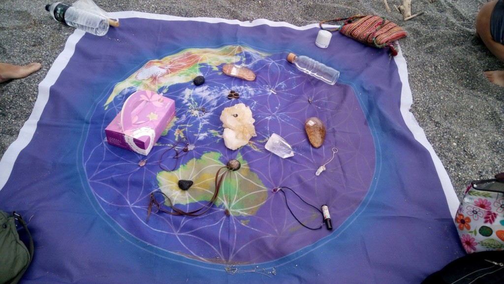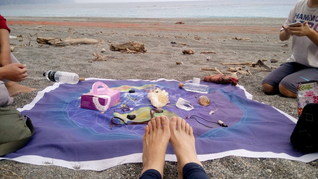 投放後,距離冥想時間還有一個多小時,於是邊聊天邊走去買咖啡。靈性書籍、礦石、市集、生態村、財富與豐盛、酒… …我們互相分享知識與經驗。