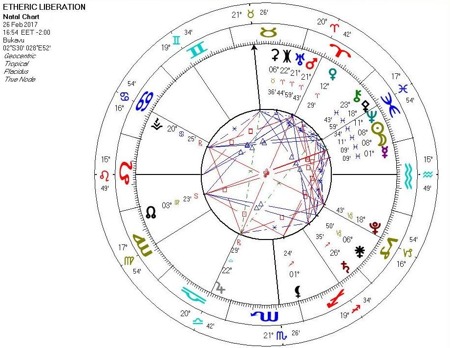 星象圖顯示:火星/天王星/灶神星/木星和冥王星冥想活動當天組成天相大十字。這個天相會加劇我們從年初就感受到的緊張情勢。地表的緊張情勢要到四月中旬才會完全解除。日環食在雙魚宮8度形成的日月合相猶如一個巨大的聚焦鏡;讓能量開始緩解地表的緊張情勢。婚神星、穀神星和月球交點形成的天相大三角猶如一面巨大的弓箭;對右指向與日環食相對的處女宮8度。這個位置就是正面龍族的母星—右樞。正面龍族會在這次冥想扮演關鍵的角色