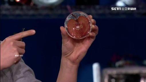 ▲切割成耳朵形狀的蘋果再生器官。(圖/翻攝自TED)