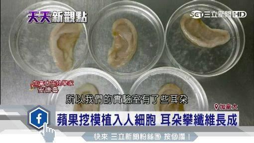 加拿大生物學家安德魯:「我拜託我太太『請用蘋果幫我刻些耳朵』沒想到她真行,所以我們的實驗室有了些耳朵。」