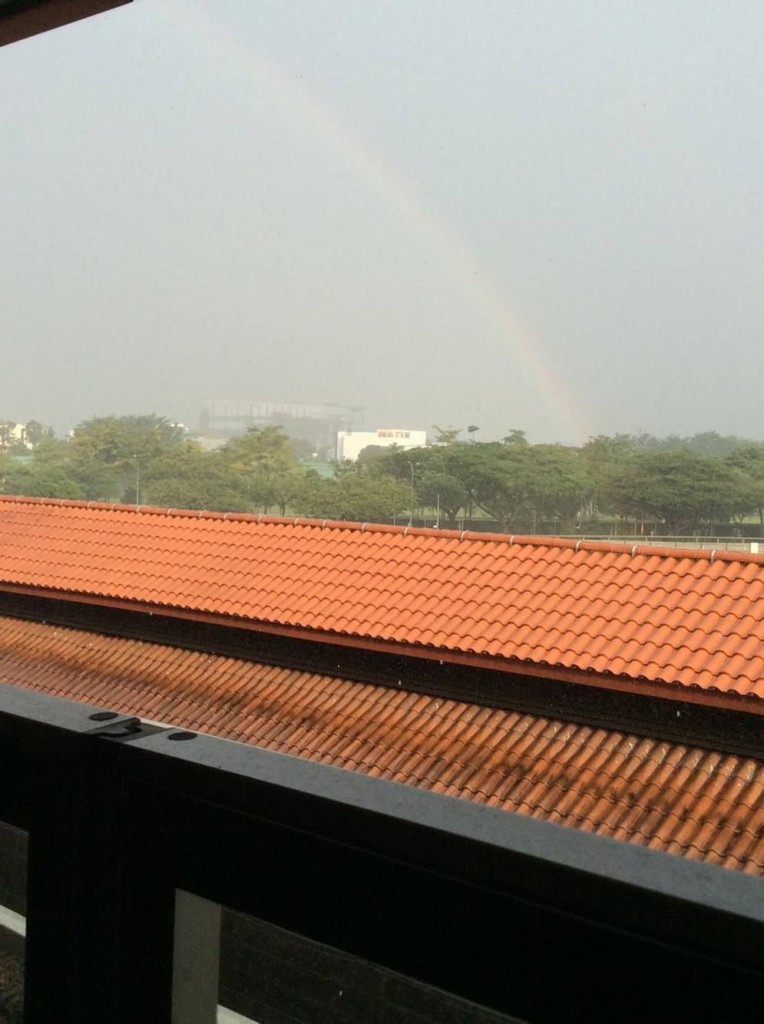 轉眼一個多月過去了,3月18號是最後兩顆寶珠的埋放日期,這真是兩個挑戰意志的地方,實在是太遠了,再往前一點就到馬來西亞了,前一天就有來過,但走到一半就找不到路了,大雨不停的下,只好無功而返。閒話不說,今天無論如何要把最後兩顆全部埋放完成,經過將近三個小時的車程及徒步,終於來到埋放地點,小心翼翼的把最後一顆埋放下去,心情無限的感慨和激動,雖然又是接近傍晚了,抬頭仰望天空,剛剛濃雲密佈的天空開始呈現出美麗的晚霞,以至還奇跡般的在埋放完畢的同時搭乘一輛豪華巴士,暈暈的就上車了,總之,一切都是最好的安排,在回到地鐵站的時候,一回頭又被震撼了:雨中升起了彩虹,有照片為證。