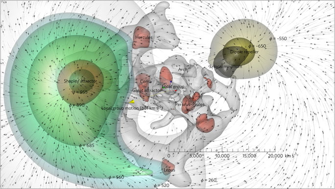 偶極驅逐器是宇宙內其中一個最大的撓場結構。本星系群就位於這個星區的中間地帶。這個星區的正負極分別位於星區的左應兩側。(譯註:夏普力超星系團是星區的正極。偶極驅逐器是負極) 偶極驅逐器是宇宙級的主要異常清除站,而地球就位於它的中央無效區。偶極驅逐器也是推動壓縮突破過程的宇宙級動力源: