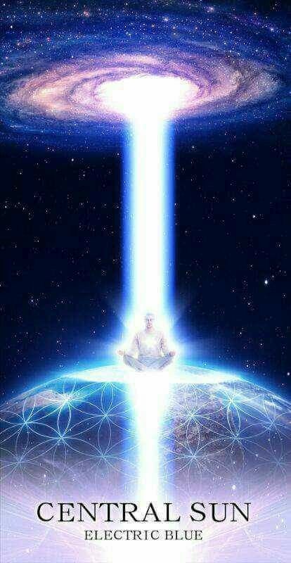 Visualize a pillar of Light emanating from the Galactic Central Sun, then going through all beings of Light inside our Solar System, through the eclipsed Sun and the Moon and then through your body to the center of the Earth. Visualize another pillar of Light rising from the center of the Earth, then up through your body and upwards into the sky towards all beings of Light in our Solar System and our galaxy. You are now sitting in two pillars of Light, the Light flowing both upwards and downwards simultaneously. Keep these pillars of Light active for a few minutes.