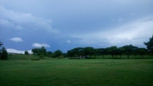雖然全台各地幾乎都在下著雨,高雄市區受到特別眷顧,天氣不錯是個多雲時晴偶爾落下幾滴雨的好天氣。園區裡面幾乎沒什麼人,森林教室這裡也是只有風聲與鳥語–很安靜很舒服。