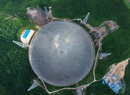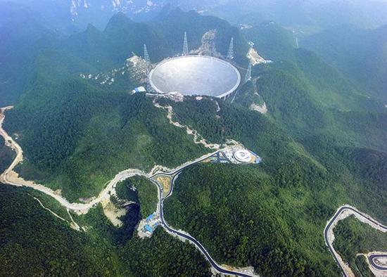 在著名科幻小說《三體》中,科學家通過“紅岸基地”向太空發射信號,成功與外星人取得聯繫。現實中,中國建了一個類似“紅岸基地”的“中國天眼”——貴州500米口徑球面射電望遠鏡(Five hundred meter Aperture Spherical Telescope,簡稱FAST),位於貴州省黔南布依族苗族自治州平塘縣大窩氹的喀斯特窪坑中。