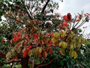 經過幾天的寒冷,常綠的茄苳樹梢上也難得掛上了幾片漂亮的紅葉。