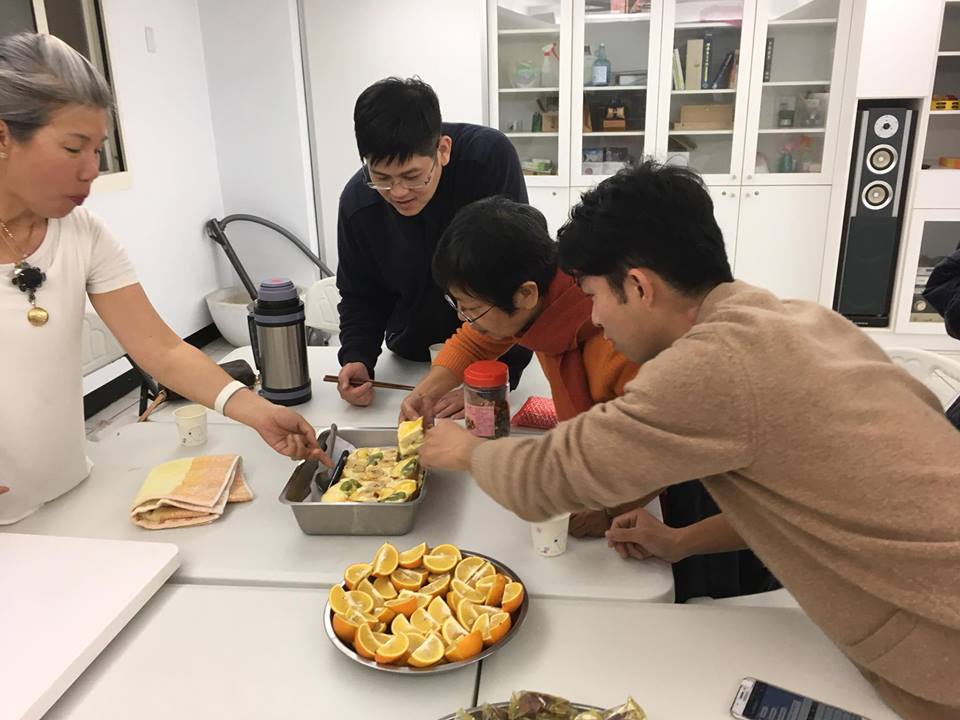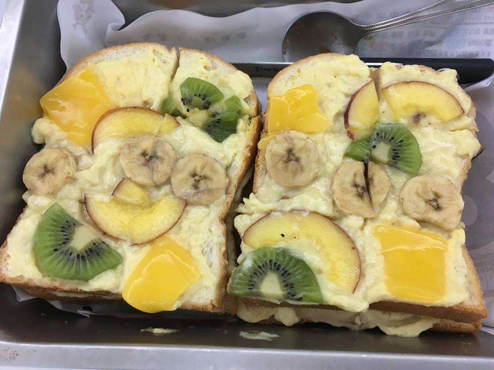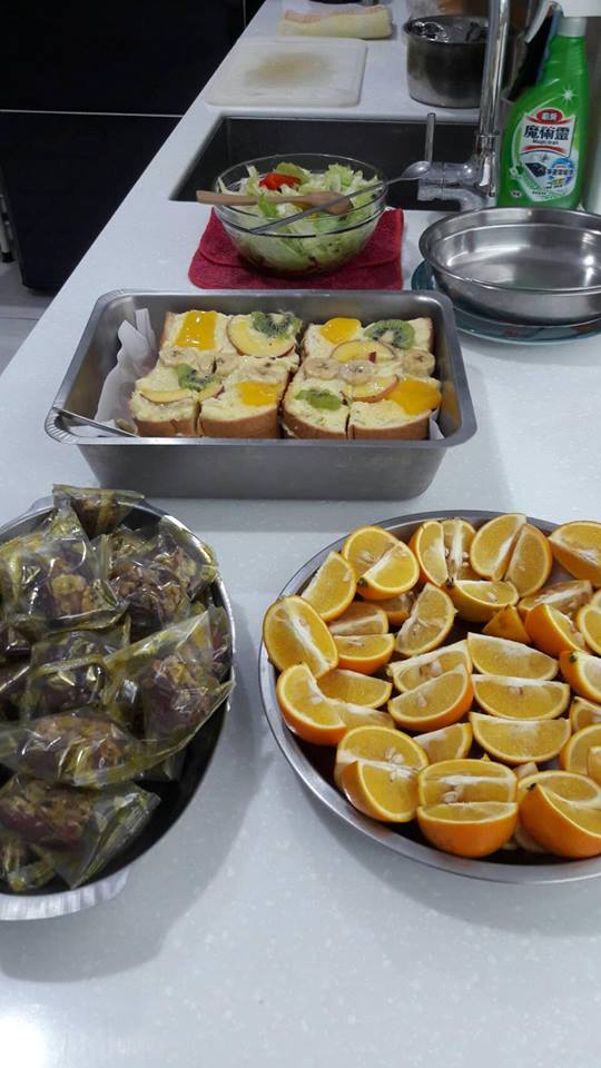 還貼心的帶了自己做的菇菇沙拉和吐司蛋糕(?),卡士達醬+水果+吐司超好吃的~菇菇沙拉也好開胃~好幸福喲~