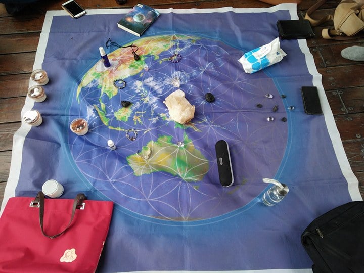 很久沒有做時間這麼長的冥想,結束後我除了眉心特別熱之外,還放得更空了… …如果不是糖糖提醒,我想我會完全忘記拍照這件事。慧亞先和我們道別,然後我們聊著礦石、精油、冥想的感覺、銀河光之家族的讀書會等等。