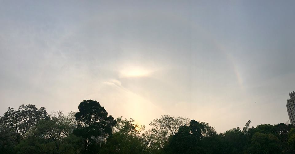 周圍的孩子們歡喜的唱著改編的彩虹歌,旁邊的民眾也觀看天空奇景,