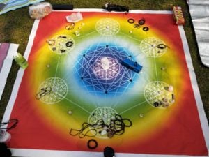 不時聽見小孩的嬉鬧聲,有爸爸好奇的在觀看我們的水晶,