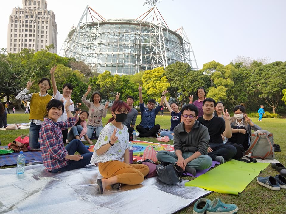 科博館的大草皮可熱鬧了,樹下一大群野餐的親子們,