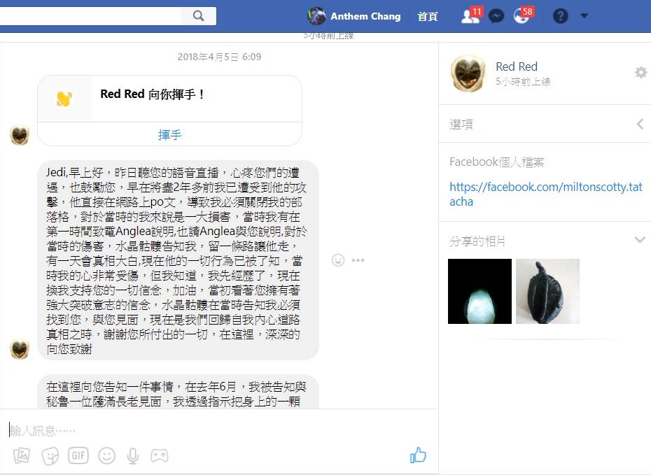 事過兩年。在 2018/4/4。團隊的每週分享。當晚我準備要休息時。水晶骷髏突然間告知我。打開電腦有訊息。我立即聽到了 JEDI 在公佈這項訊息。聽著所有人的遭遇。我留下了眼淚。水晶骷髏告知我。如果我願意。我可以支持JEDI所有的一切。我必須告知 JEDI 我所遭受的一切。現在是時候了。