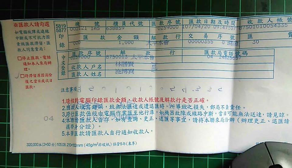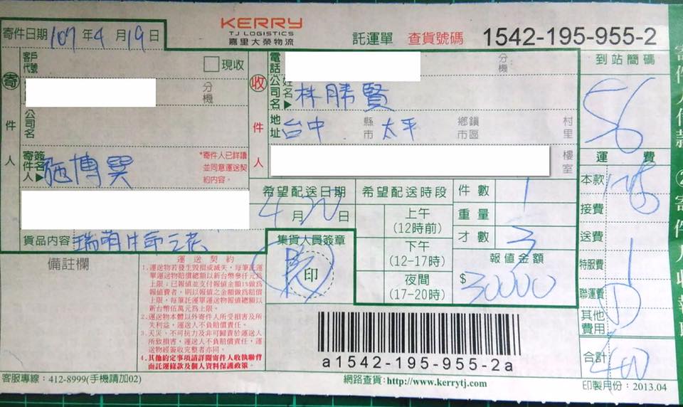 林先生已經在2018年4月20日收到本人傳給他的單據: