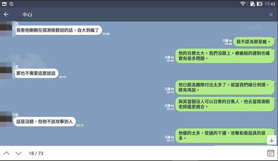 由於林先生不明究理地淌渾水,團隊和中國探測術學員們之間的衝突,升溫成團隊對上中國探測師的意識形態鬥爭。台灣中區的團隊成員,也透過聯合聲明講述,這位林先生已經不是當初的那位和平星老師了。看完聯合聲明之後,我開始懷疑林先生的私德,和身為光工的品格。文章中描述的人,真的是我認識的林大哥嗎???