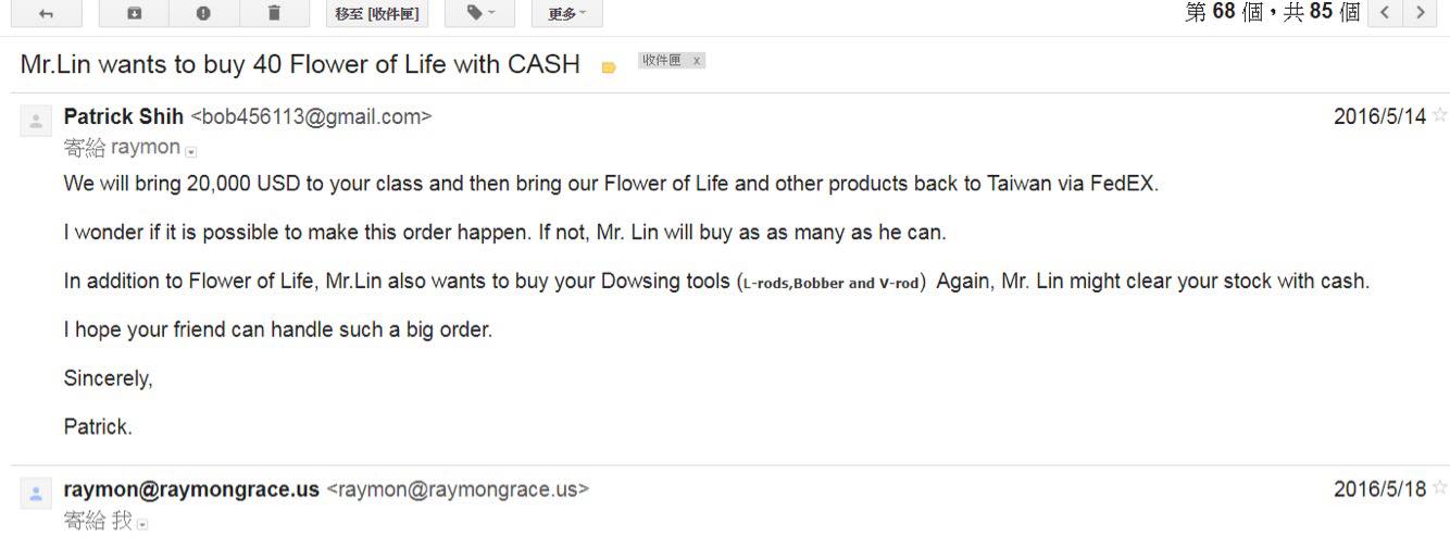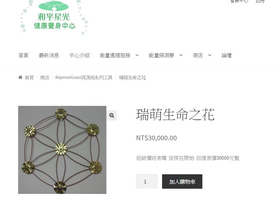 我們從美國學完探測術之後也將40組的生命之花引進台灣。林先生透過網路和其他管道販售這個產品: