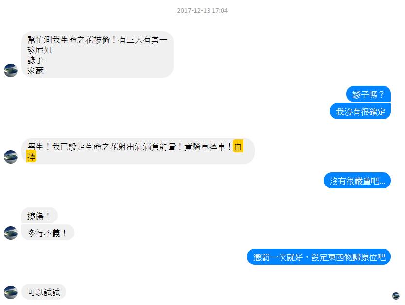 最後,我必須公開林先生不適任探測術老師的鐵證。2017年12月13日晚上,我和女朋友逛星巴克。我在喝咖啡的時候收到林先生傳來的訊息: