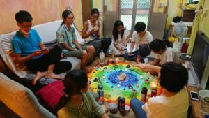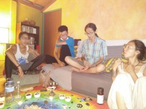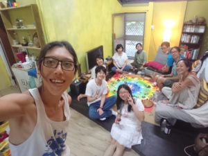 冥想結束後Jackal哭著走出門外,一段靜默後,卡歐里表示覺得很感動,一開始就落淚了;我是受到一種團結力量而感動…。稍稍沉浸在這樣的氛圍中大約十分鐘左右,糖糖拿出各種禮物分送給大家,並且十分興奮的表示要提早為九月壽星唱慶生歌(在場就有三位呢!)。