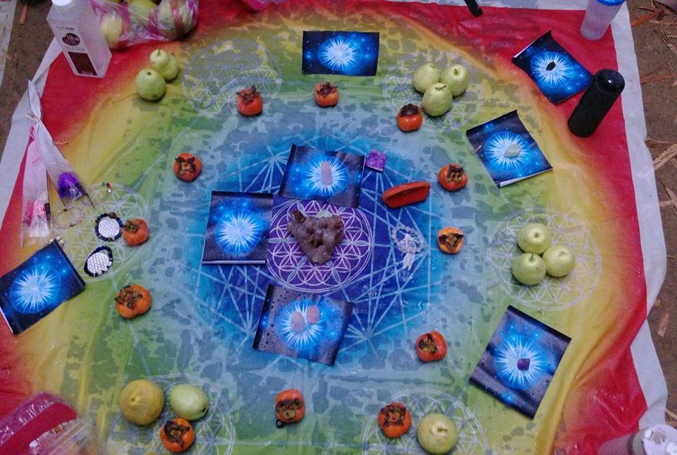 標準冥想做完後,儘管小雨滴還是下著,地上也有些泥濘,我們還是決定將聖壇轉移到竹林環繞的小空地,此處較為隱密也少了干擾。