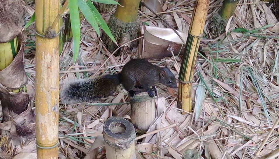 有位來自西班牙的美麗女光工也一同加入我們,建勳擔任大家的翻譯,這也才理解到原來確實在做揭露工作的同時可能遇到各種的攻擊,我們也聊到關於古埃及歷史、她的著作和道德經。她不斷驚嘆於竹林的美,同時丟了幾塊碎小的食物吸引不少鼻子靈敏的小松鼠前來覓食。