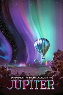 美國太空總署為了全面揭露秘密太空計劃,在近期張貼了太空旅遊的宣傳海報;邀請民眾到木星看極光或到土衛二看冰噴泉:
