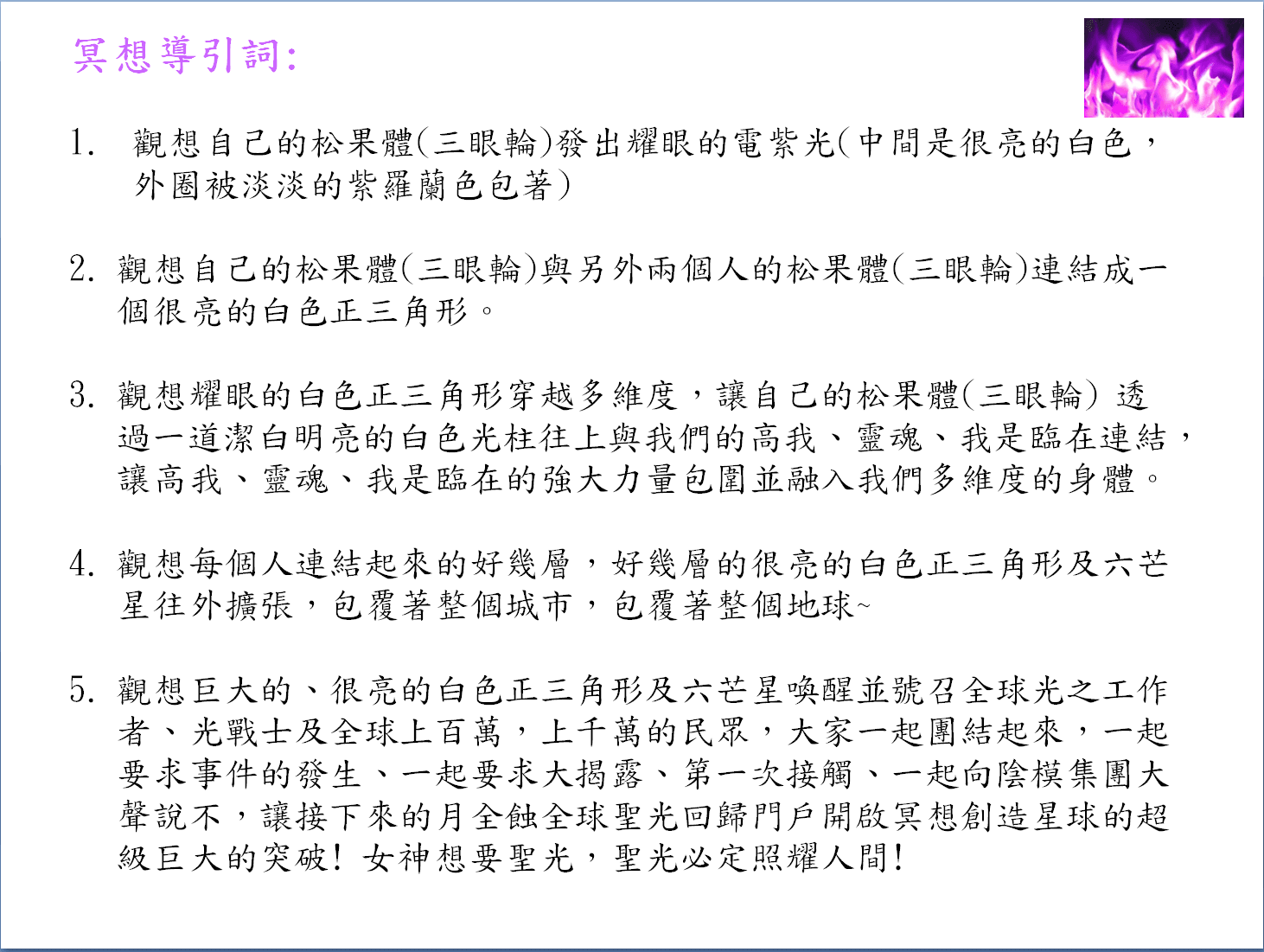 1、請大家最近於任何冥想前都加入這段神聖意圖: