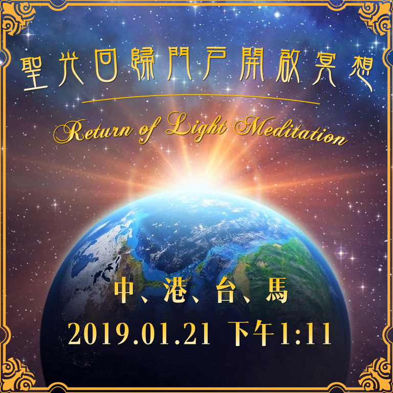 (簡體)【冥想集結】2019年1月21日-全球聖光回歸門戶開啟冥想【附音頻】https://mp.weixin.qq.com/s/WBxgp4ECKSdg5VBgqMlWSg