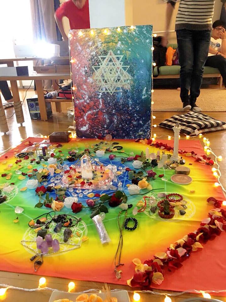 為了迎接明天極為重要的「全球聖光回歸門戶開啟冥想」,中區夥伴在今天就已經卯足了勁先為明天彩排。以白色為基礎,優美典雅的女神裝扮、帥氣簡約的男神裝扮,我們凝聚在一起,為聖光護持!