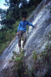 保利諾·馬馬尼站在其中一個金字塔無草木樹葉的地方。