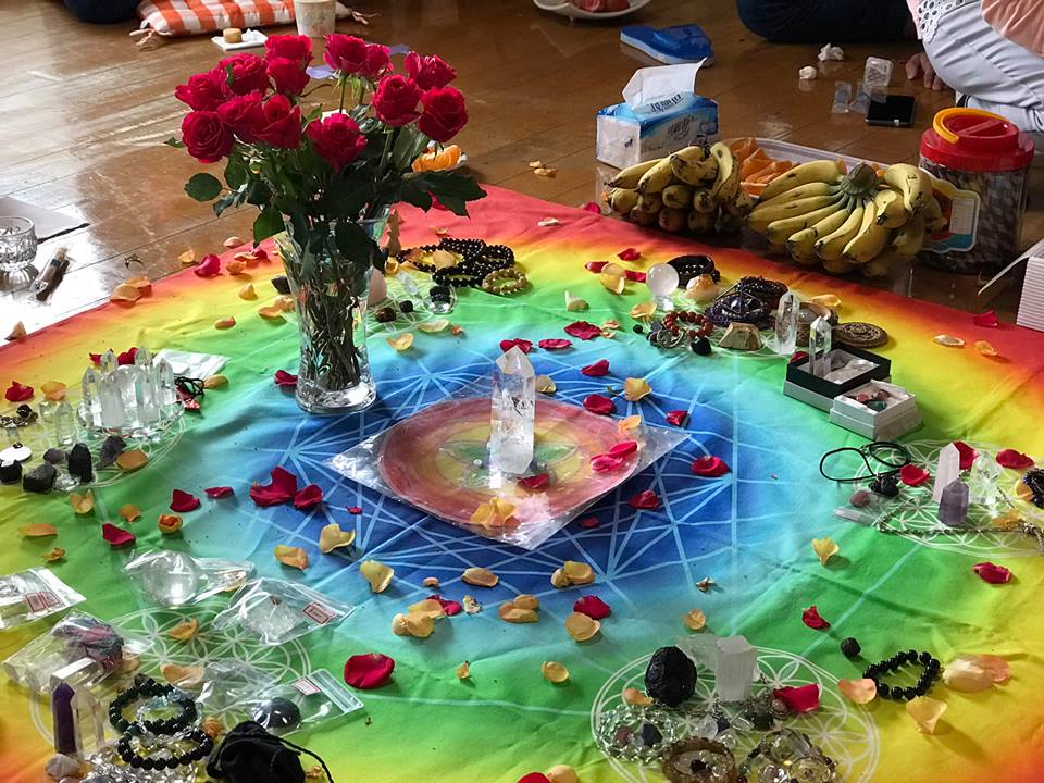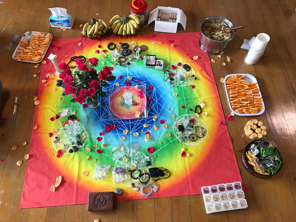 大年初十三,還在年節的氛圍裡,中區聚會又歡樂開張囉!今天簡直是美食展的概念,萬分感謝許多帶來美食的夥伴們,有香蕉、橘子、餅乾、果凍、巧克力棒、湯圓,還有一鍋熱騰騰的猴頭菇人參湯,真的變成「食」體聚會了?。瞧這聖壇旁圍成一圈的美食,和玫瑰花、水晶、寶珠們形成了巧妙的無違和感,真是賞心悅目❤️