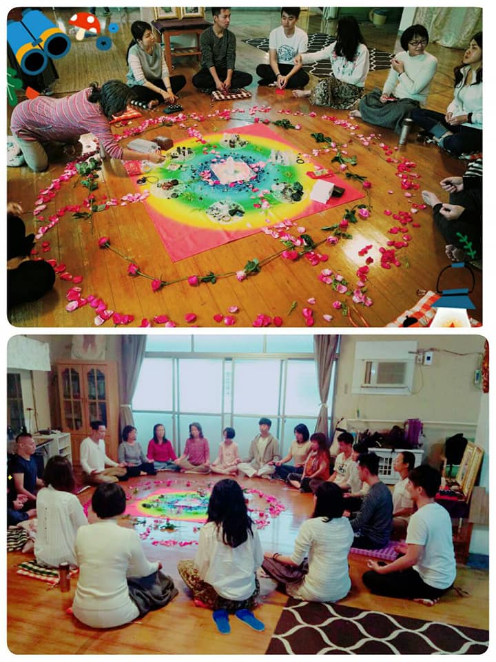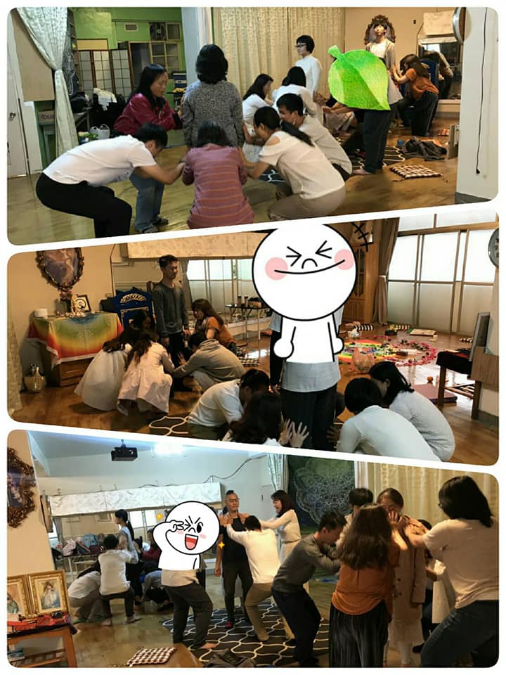 3.前一天很多人因能量異常沒能睡好覺,Max亦感冒不適。Christy請大家6~7個人一組做「Yah愛的觸摸療癒」,幾個回合下來,很多人全身發熱,有被療癒到,Max看起來精神也好多了,「Yah愛的觸摸療癒」能量很強大希望也能成為聚會的日常。