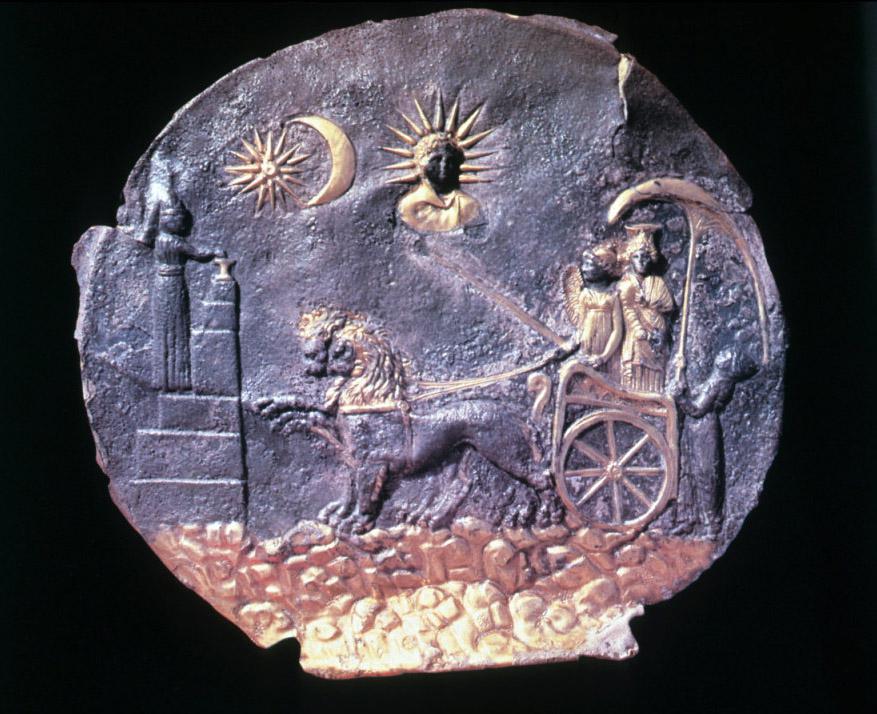 眾神之母西貝勒的象徵通常呈現為:黑色立方石、流星、金星的新月、聚寶盆、壁畫冠、戰車和獅子。