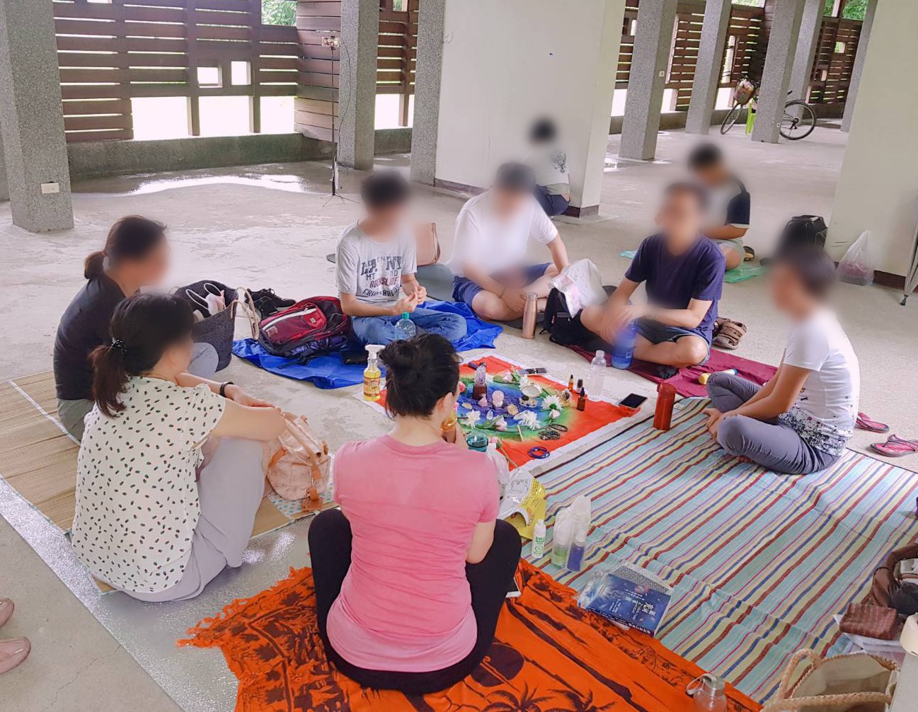 剛開始冥想時雖然旁邊就下著大雨,天氣好像也有點悶熱,但內心是平靜的,冥想完後,聽著大家各自的自我介紹和遭遇後影很慶幸大家能有機會走上覺醒的道路,並在這裡見面。