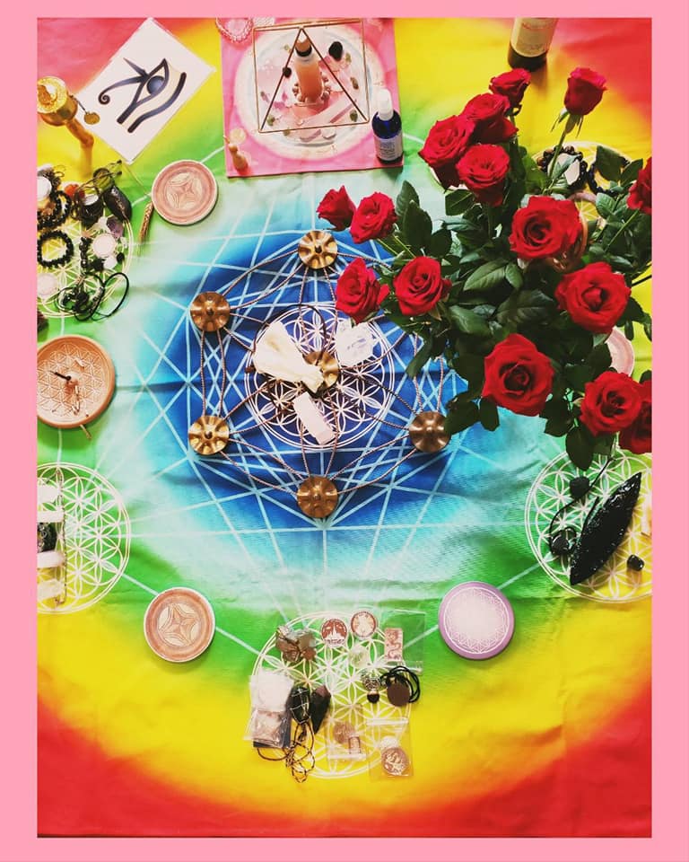 有時我在做女神漩渦冥想時,我會看見彩虹流光,來到聚會場地好多光工一起旋轉冥想,一……ㄟ……阿……能量共鳴時畫面就更美麗了,彩虹流光像動態變化的萬花筒,每一次的排列組合都是新的呈現,紅的、金的、黃的、藍的、綠的…,每一個光工好像形狀顏色各異的亮片,各自不同,結合在一起竟然這麼燦爛美麗,這就是靈魂家人合一的美。