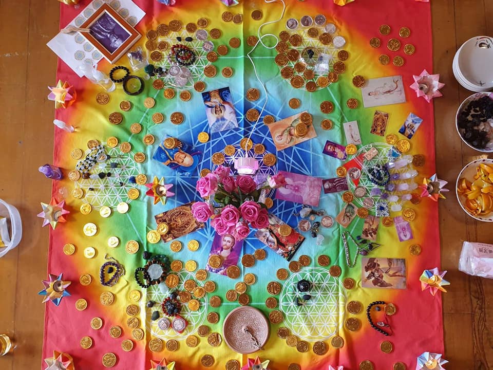 到了分享時間,有一位夥伴分享他能看到聖壇的玫瑰花上有紫火在燃燒,聖哲曼大師是紫火保管者,聖哲曼之光帶回神秘學校與金融富足,看來聖哲曼大師特別喜歡我們這次的聖壇呢!