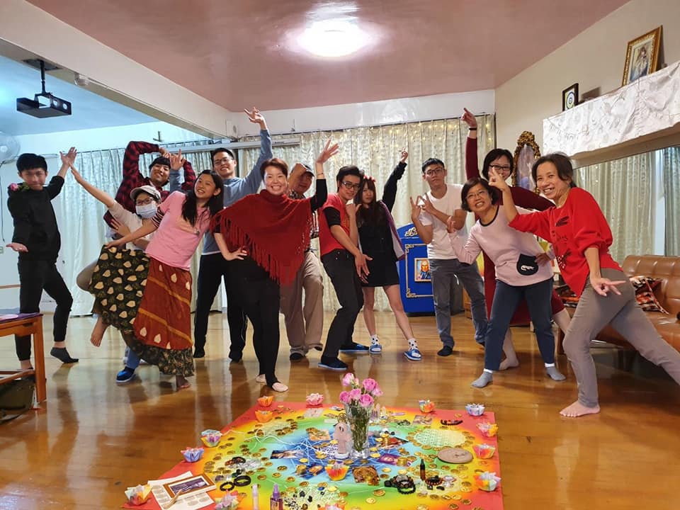 回到聚會的主題,聚會前共有14為夥伴一起聚餐享受豐盛的尾牙,為2019的努力給自己一個犒賞。到了聚會開始佈置聖壇,某位光工贊助了一整罐的「金幣」,加上大家各自的銀幣,這大概是中區聚會有史以來最豐盛的一次聖壇了。