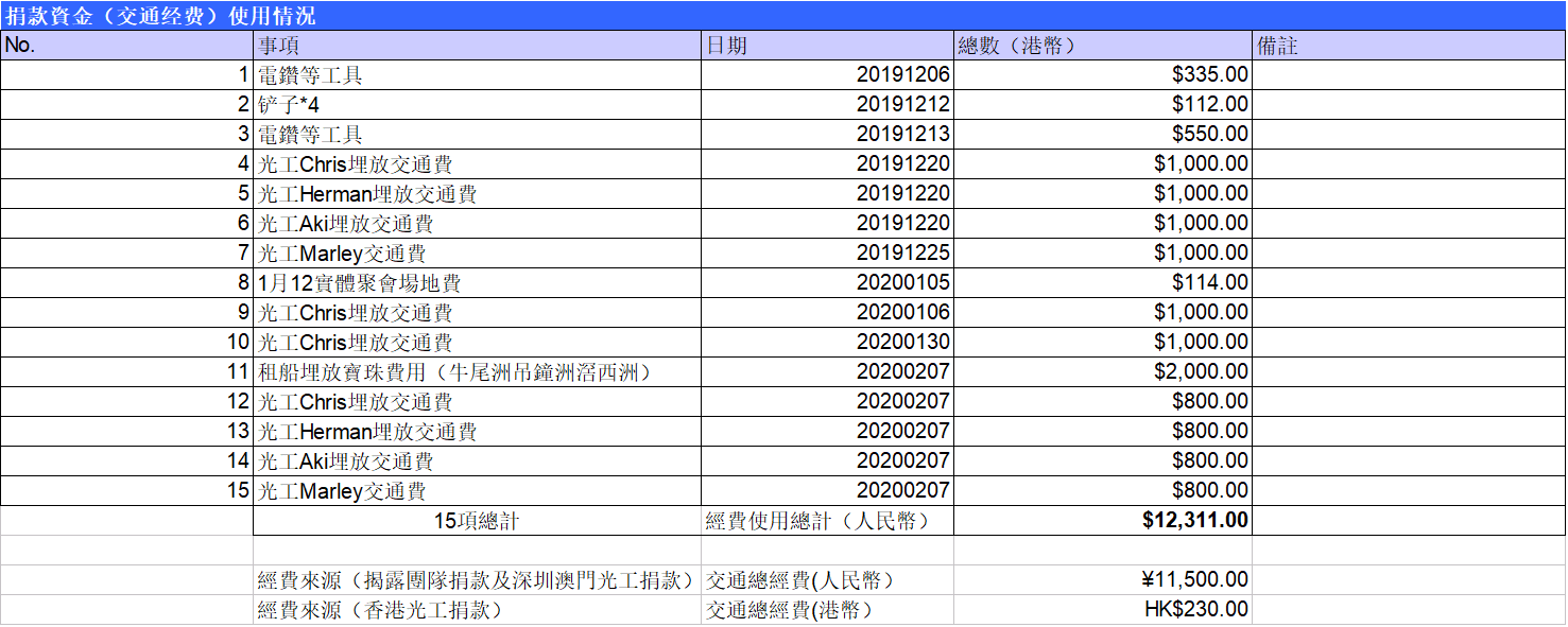 (用於XianggangIGAG團隊作為埋放寶珠交通等費用)
