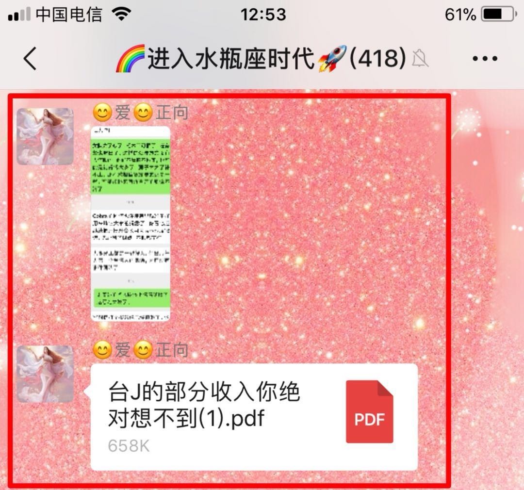 三、這位毀謗者於前幾天於許多微信群張貼一個17頁的檔案,張貼時標題是【台J的部分收入你絕對想不到(1)】。