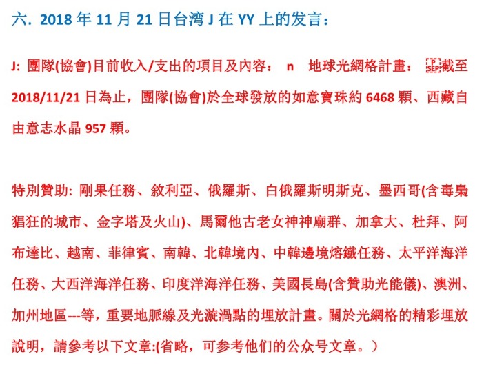 ※關於這份17頁“臆測”性的財務文件,最後我們再針對P13-17的【六. 2018 年 11 月 21 日台湾 J 在 YY 上的发言】有關寶珠款項及財務報表進行說明: