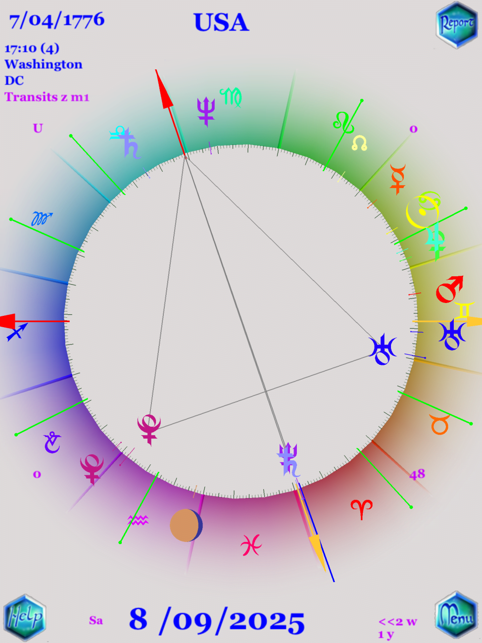 這裡也有天王星-冥王星中點運動的循環組態對應到美國的天頂,你也可以看到土星-海王星之間所行成的天頂。