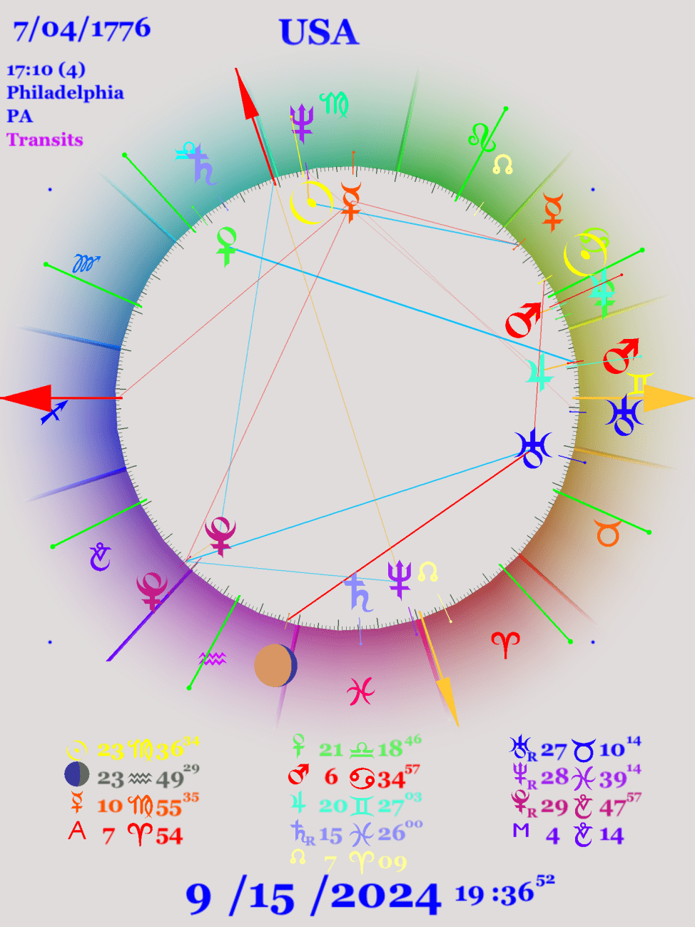 這個星象圖顯示出2023年開始進行中點運動,當它和這個中點運動和美國星象圖來比較,事實上是在2021年就開始,合乎圓形期相位內與標準值的可容誤差。