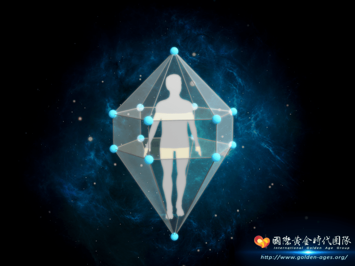 我們在第二階段會觀想14個點,14個水晶支點加上3顆植入物,14個支點發出帶電藍光的光柱射向植入物,讓植入物瓦解。