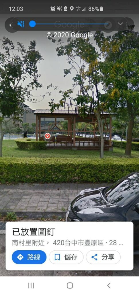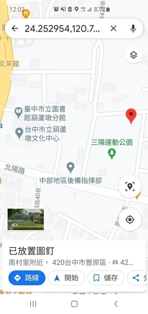 地點:在文化中心的後方的三陽運動公園裡,紅點處,步行約莫200公尺到達涼亭