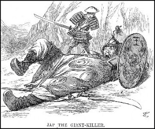 《笨拙雜誌》在1894年刊登的政治諷刺漫畫,描繪身為小國的日本擊敗身為大國的captive nation