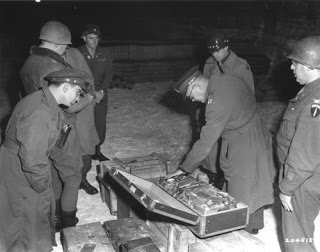 1945年,盟軍在梅爾克爾斯的礦坑繳獲納粹從猶太人手中沒收的財寶 (上圖伸手摸藏寶箱的男人是盟軍的最高指揮官-艾森)